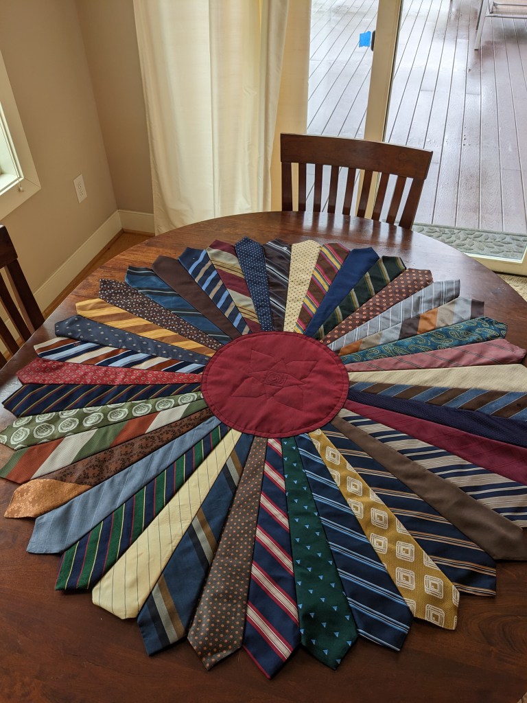 Last month I finished a memory Quilt made from my Father in Laws ties.
