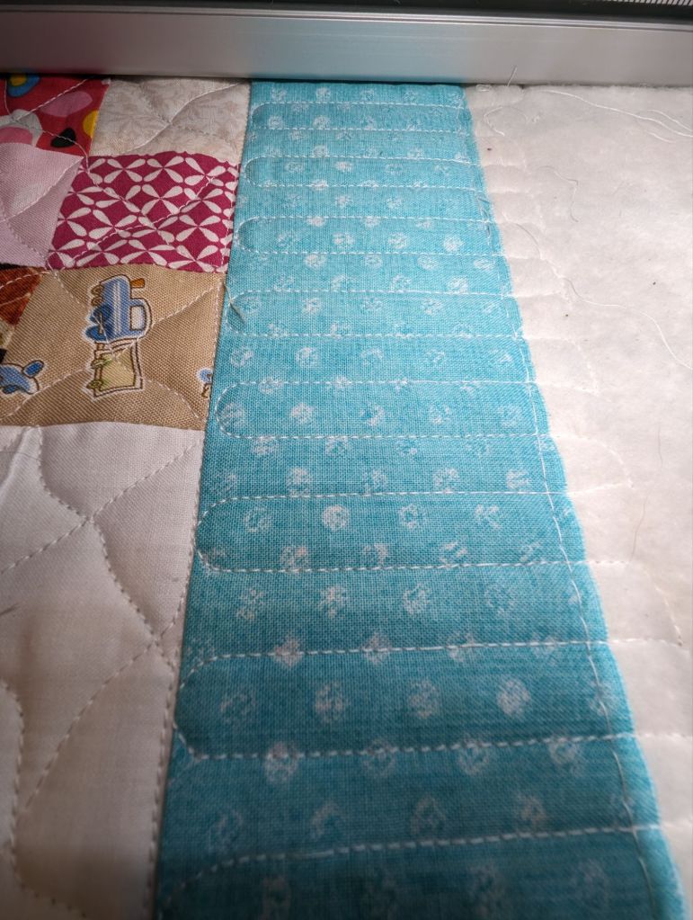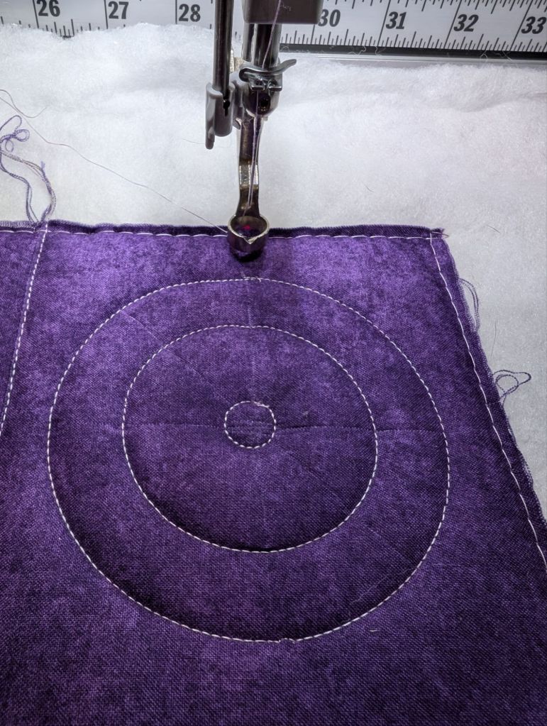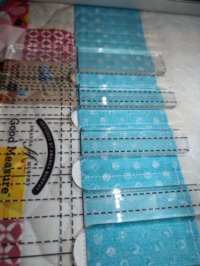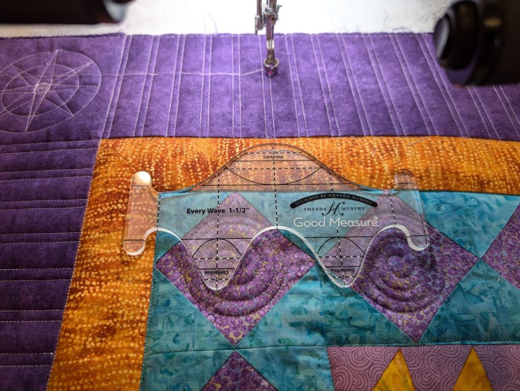 I used one of Amanda Murphy’s rulers to make “Lady Fingers Quilting” in the border…the blocks are filled with my “Dancing Squares” quilting.