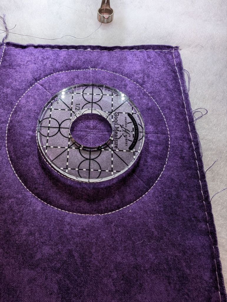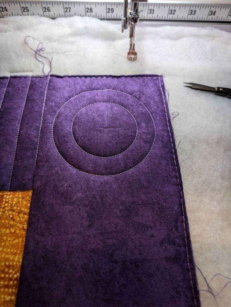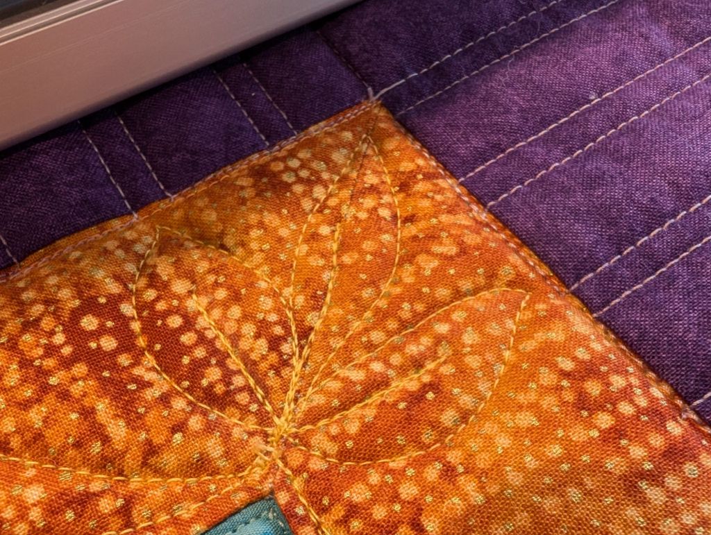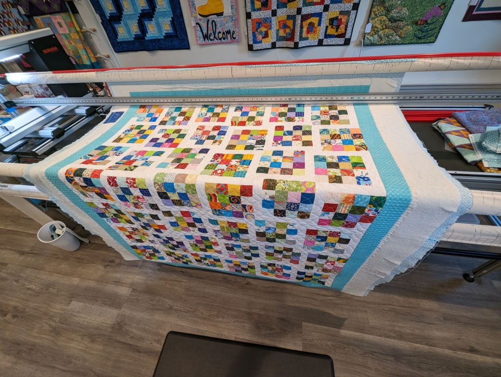 I used one of Amanda Murphy’s rulers to make “Lady Fingers Quilting” in the border…the blocks are filled with my “Dancing Squares” quilting.