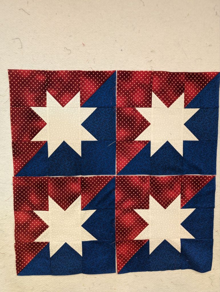 This week I finished 4 blocks for a group “Quilt of Valor” veterans Quilt. These blocks will be gathered, then assembled by members of Olde Kent Quilters Guild, Chestertown MD.