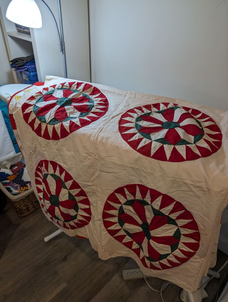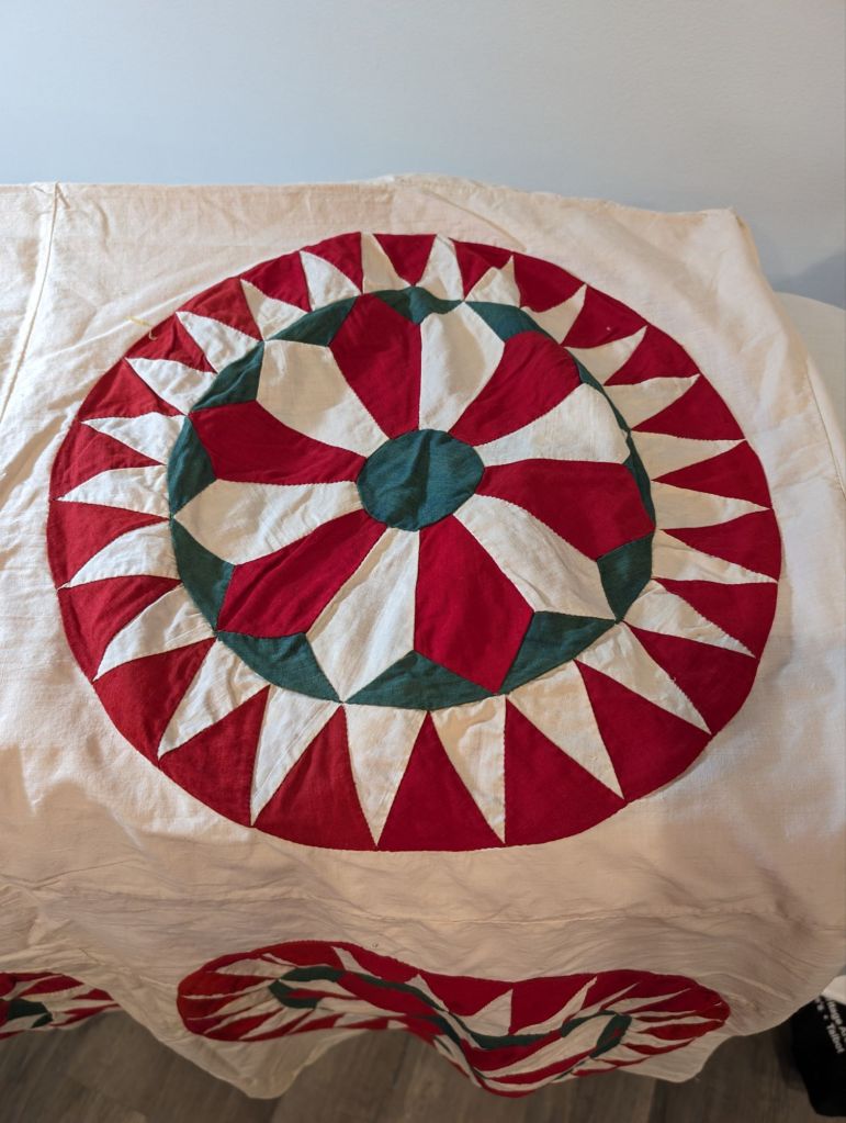 This quilt was from a Marie Webster pattern published in 1922. Made some time in the 1920-1930s. It’s in great condition, just one small group of holes on one leaf.