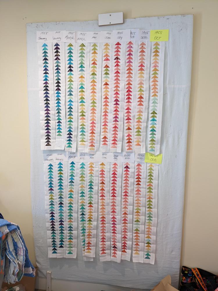 I did manage to squeeze in a little time to get the October strips finished on the Temperature Quilt. It felt good to move this one along.